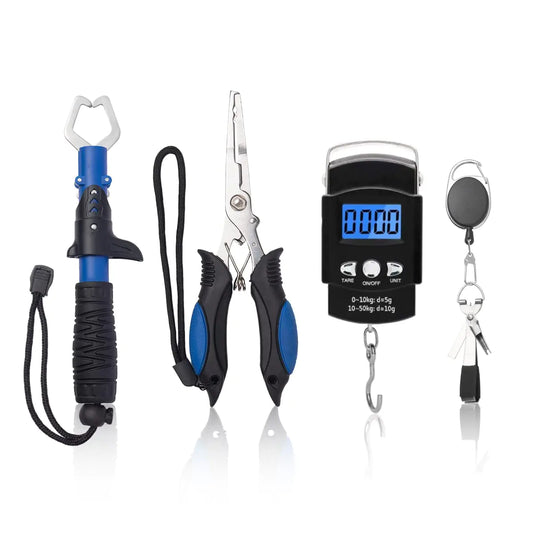 YAMLGHT Fishing Tools Set Fishing Pliers Fish Lip Gripper Handheld Digital Fish Scale Fishing Knot Tying Tool with Retractors Fishing